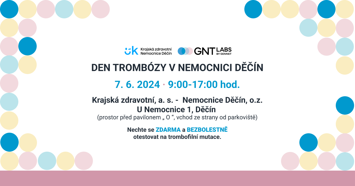 GNTlabs by GENNET partnerem Dne trombózy v Nemocnici Děčín: Ohrožuje vás trombóza? Zjistěte to ZDARMA!